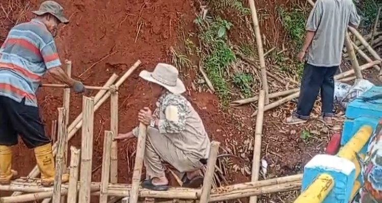 TAMANSARI – Seluruh jajaran perangkat Desa Tamansari ramai ramai bergotong royong memperbaiki