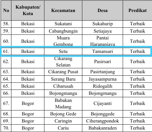 Penetapan juara tertuang dalam Keputusan Gubernur Jawa Barat Nomor Kep.043/PMD.01.02-BINDES/2025 tentang Penetapan Desa dan Kelurahan Berkinerja Terbaik dalam Pelaksanaan Anugerah Gapura Sri Baduga Tingkat Provinsi Jawa Barat Tahun 2025.