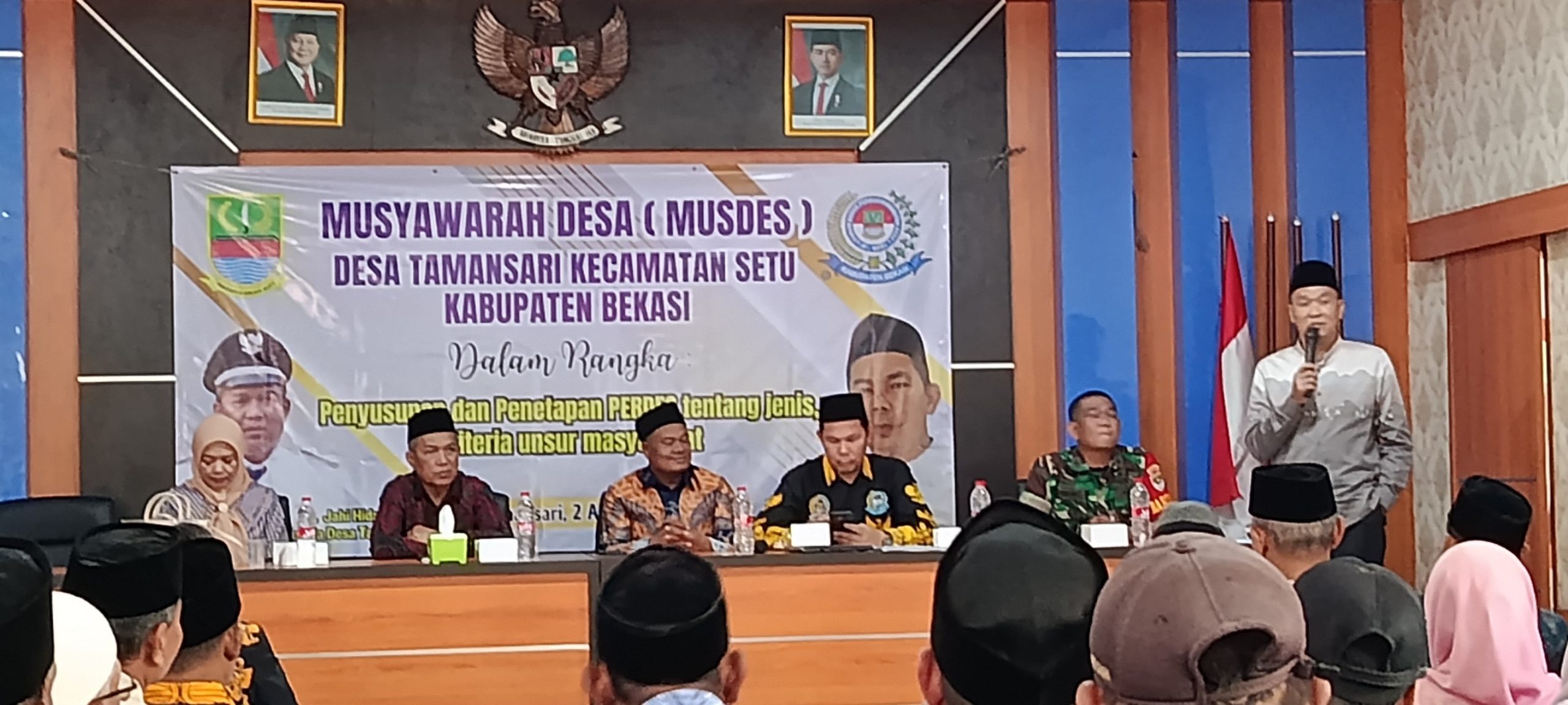 Kepala Desa Tamansari M Jahi Hidayat dalam sambutannya menyampaikan agar di dalam musdes ini semua pihak dapat menyampaikan pendapatnya untuk kategori kriteria bagi pemilih.