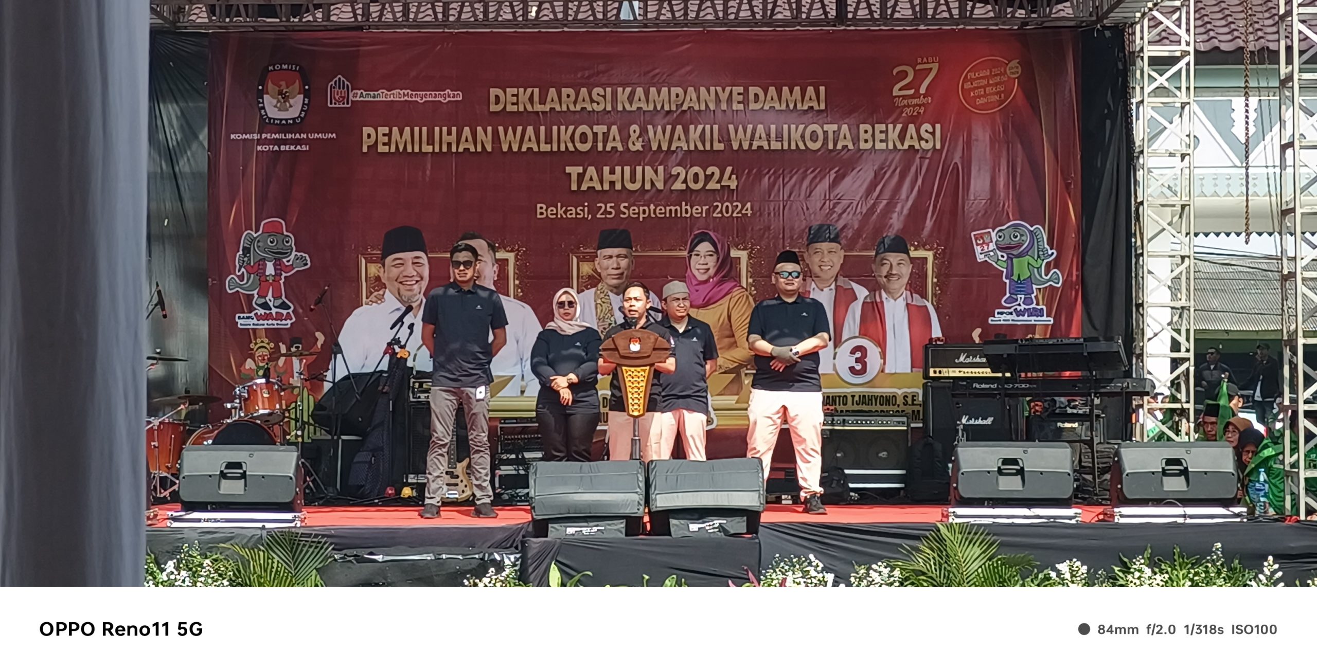 KOTA BEKASI – Komisi Pemilihan Umum (KPU) Kota Bekasi menggelar kampanye damai pilkada Kota Bekasi 2024 yang diikuti tiga pasangan calon Wali Kota dan Wakil Wali Kota Bekasi, di alun-alun Kota Bekasi, Rabu (25/9/2024) pagi.